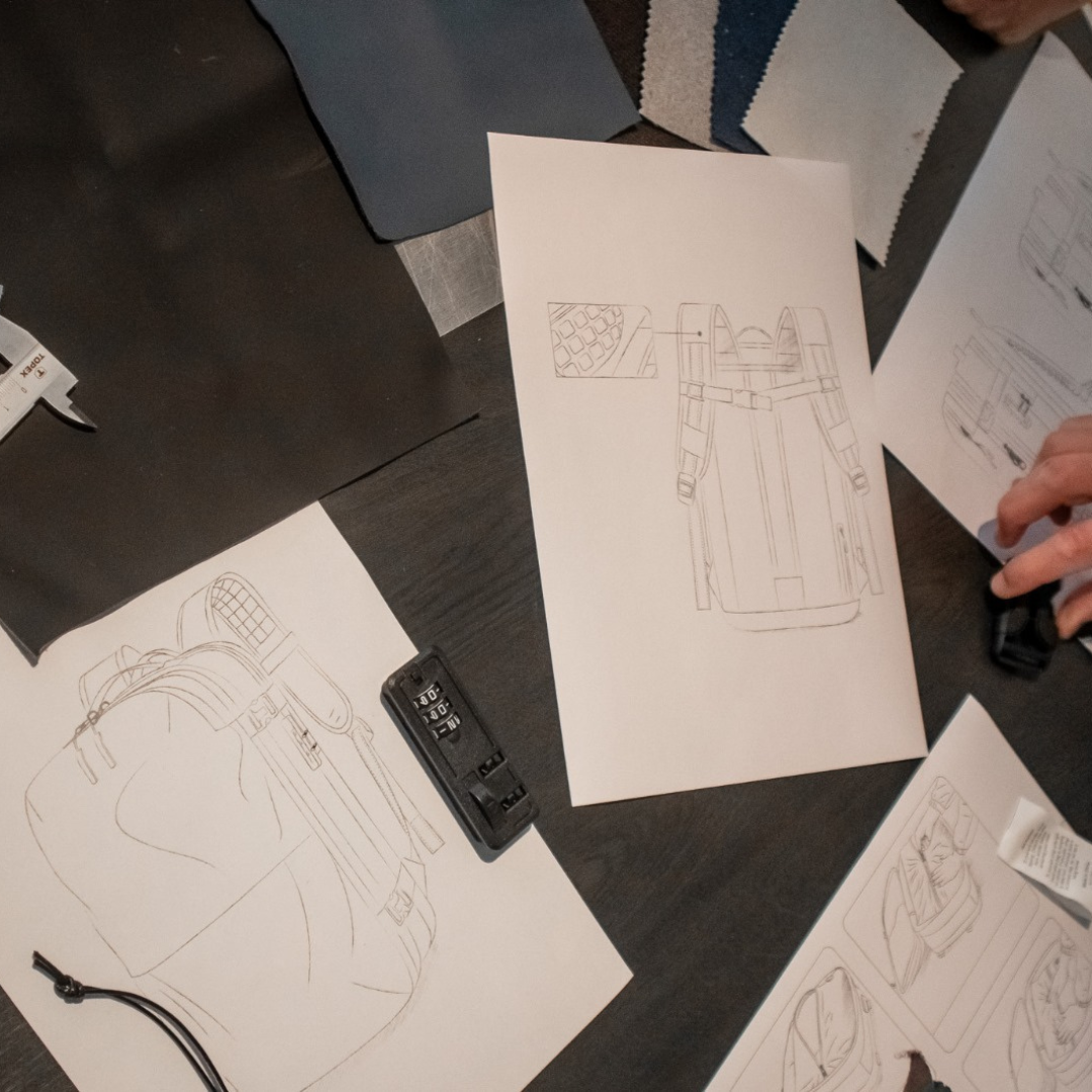 In 2020, we embarked on a journey to turn a bold idea into reality. Surprised by the lack of backpacks utilizing plastic vacuum bag technology, we set out to create a durable, sustainable compression system. Our mission led us to integrate the vacuum bag concept into a backpack compartment, culminating in the innovative design you see today after numerous sketches and iterations.