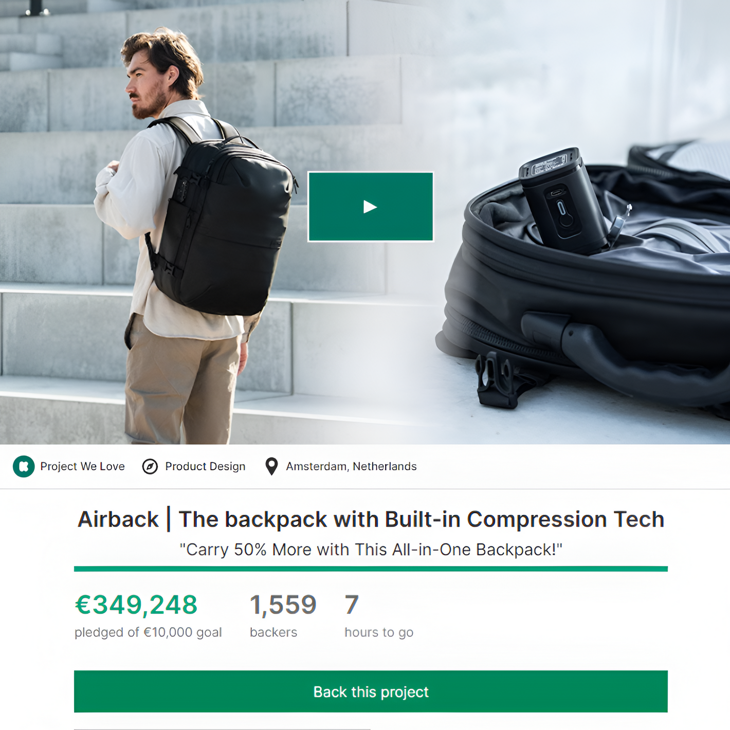 In 2024, we proudly expanded the Airback® family with three innovative additions — the Airback® GO, NEXT, and MAX. Each model was created to meet different travel needs while staying true to our mission of making packing smarter and travel easier. To bring the Airback® MAX to life, we turned once again to Kickstarter, and the response was incredible. Our campaign raised over €200,000, a milestone that not only validated the demand for our newest design but also strengthened our brand’s position in the travel market. This success reinforced our belief in continuous innovation and set the stage for the exciting journeys ahead.